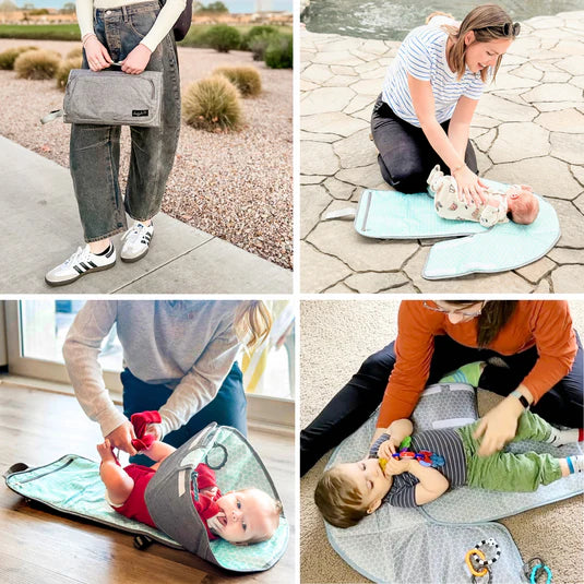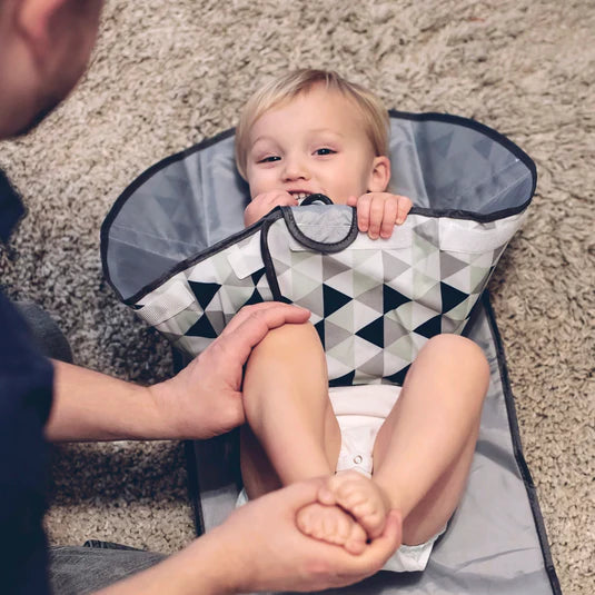 Con su almohada incorporada y relleno en todas partes, tamaño portátil compacto, superficie resistente al agua y correa para colgar de su muñeca o cochecito, Playtime Changing Pad™ tiene todo lo que necesita para hacer que cambiar pañales sea muy fácil, ¡en casa o mientras viaja!