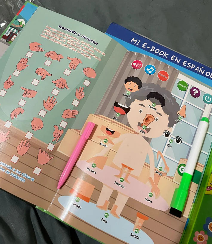 Con nuestro Libro E-book , tu hij@ aprenderá como pronunciar y escribir perfectamente +200 ejemplos de Números, Figuras , Animales entre otros , solo presiónalos y el libro hablara!